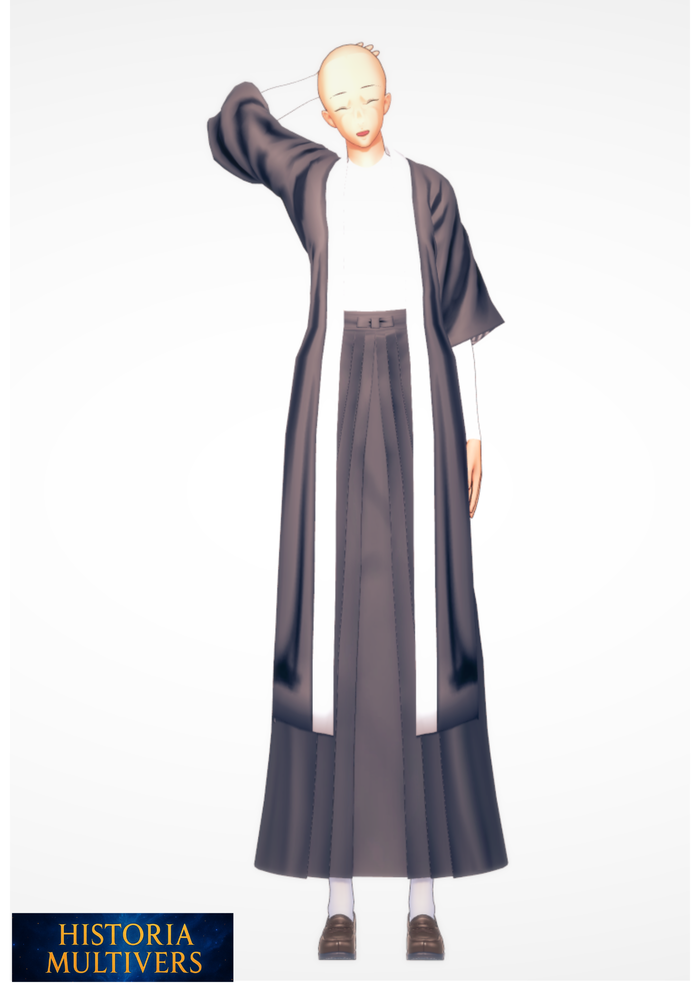 Porte une robe ample traditionnelle évoquant à la fois une tenue religieuse et administrative.